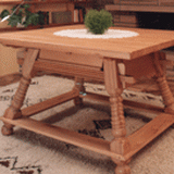| Rothenburger Tisch Eiche massiv 120 x 120 cm H 77 cm | Schaukelpferd Kiefer massiv Länge 120 cm Sitzhöhe 46 cm Gesamthöhe 80 cm |